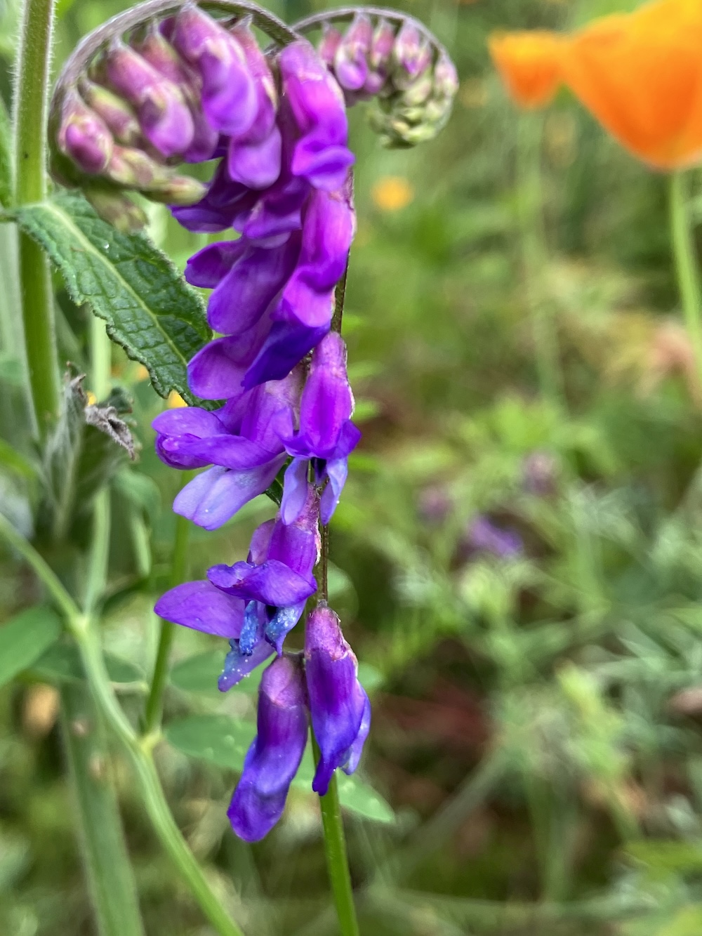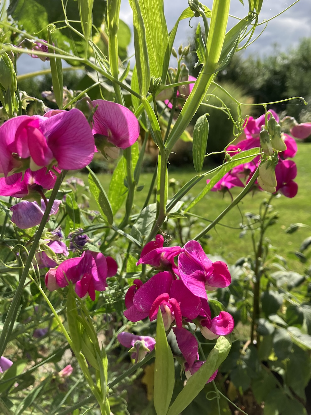 Een onbekende plant die afhankelijk is van andere planten om zich omhoog te werken. Een klimplant dus. Doet een beetje denken aan lathyrus. Mooie bloemen die lang bloeien.
