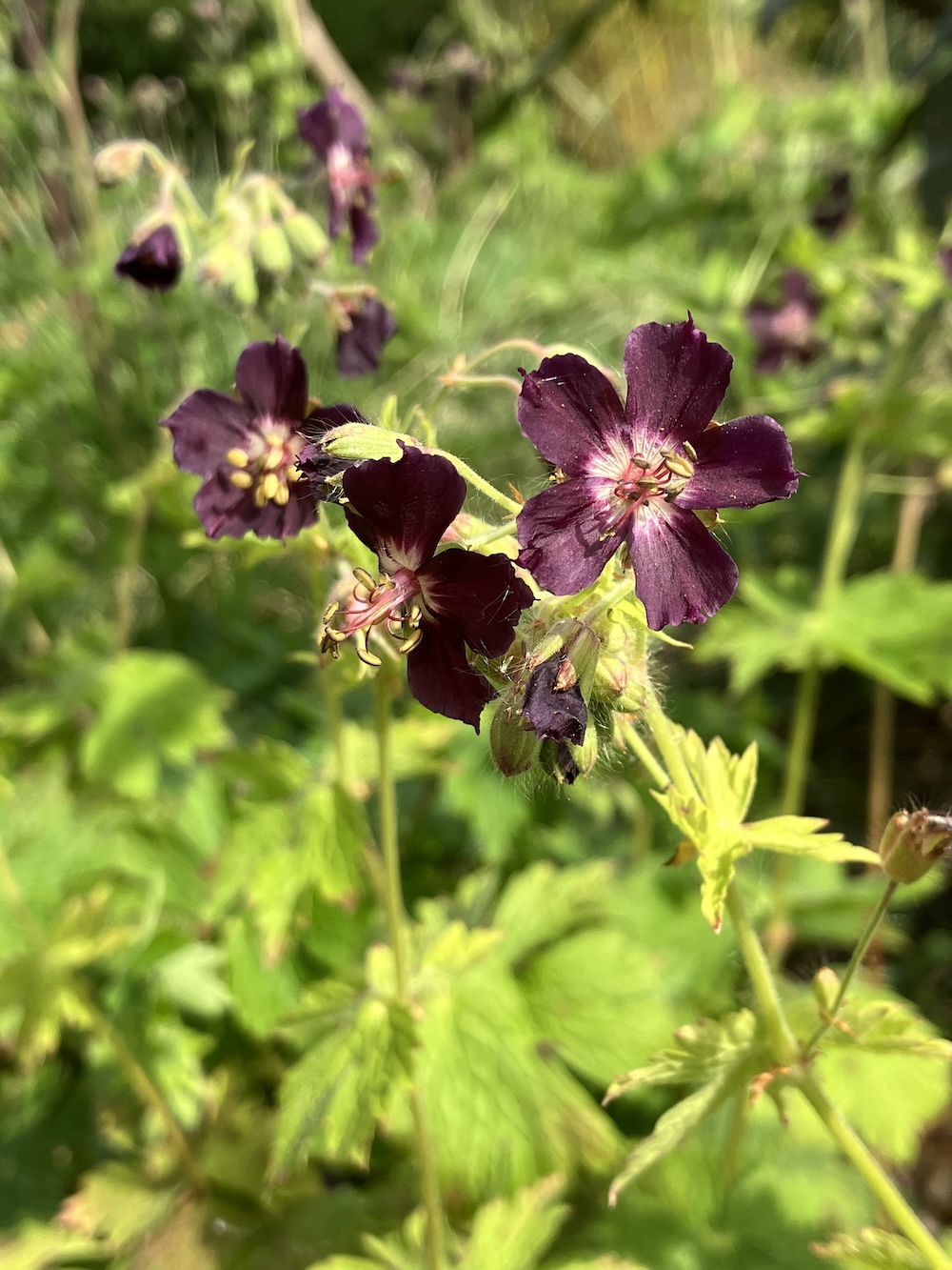 Prachtige, natuurlijk ogende combinatie met de donkere bloemen van de inheemse Geranium Phaeum. Een goede voor de bostuin. Je kunt hem ook in het wild tegen komen.