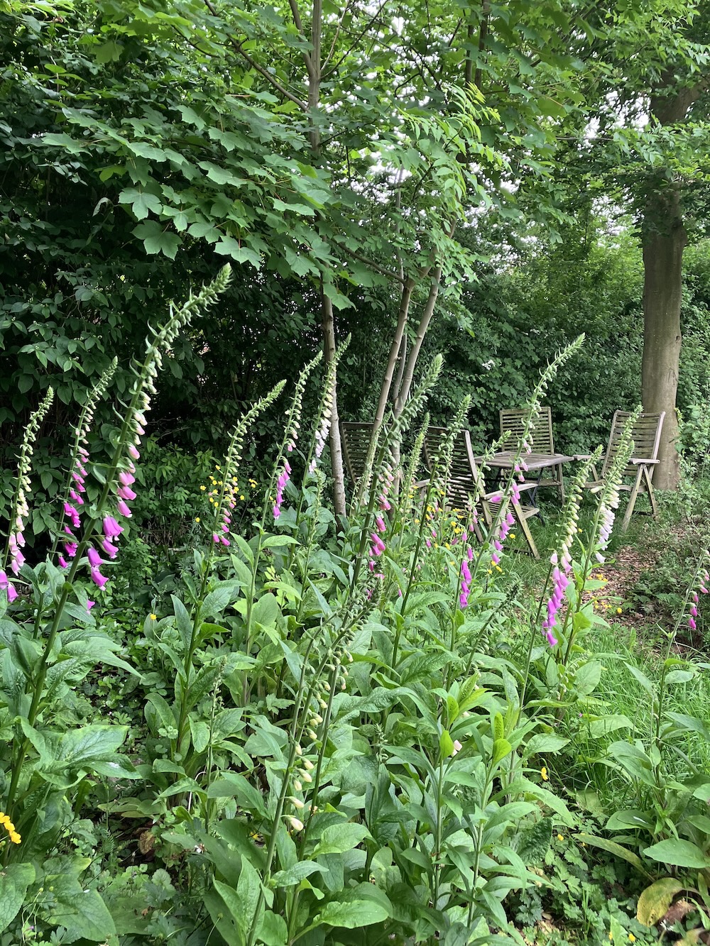 Zonder steuntje blijft hij laag en kronkelt hij door de border. Ook leuk. De roze bloemtrossen zijn heel geschikt als snijbloem.