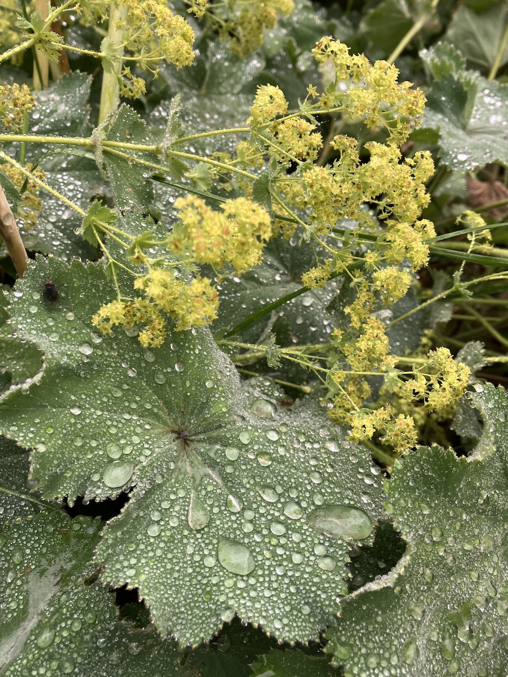 Bodembedekker voor schaduw die vooral opvalt door de ronde bladeren waar het water zo mooi op blijft liggen na een regenbui.