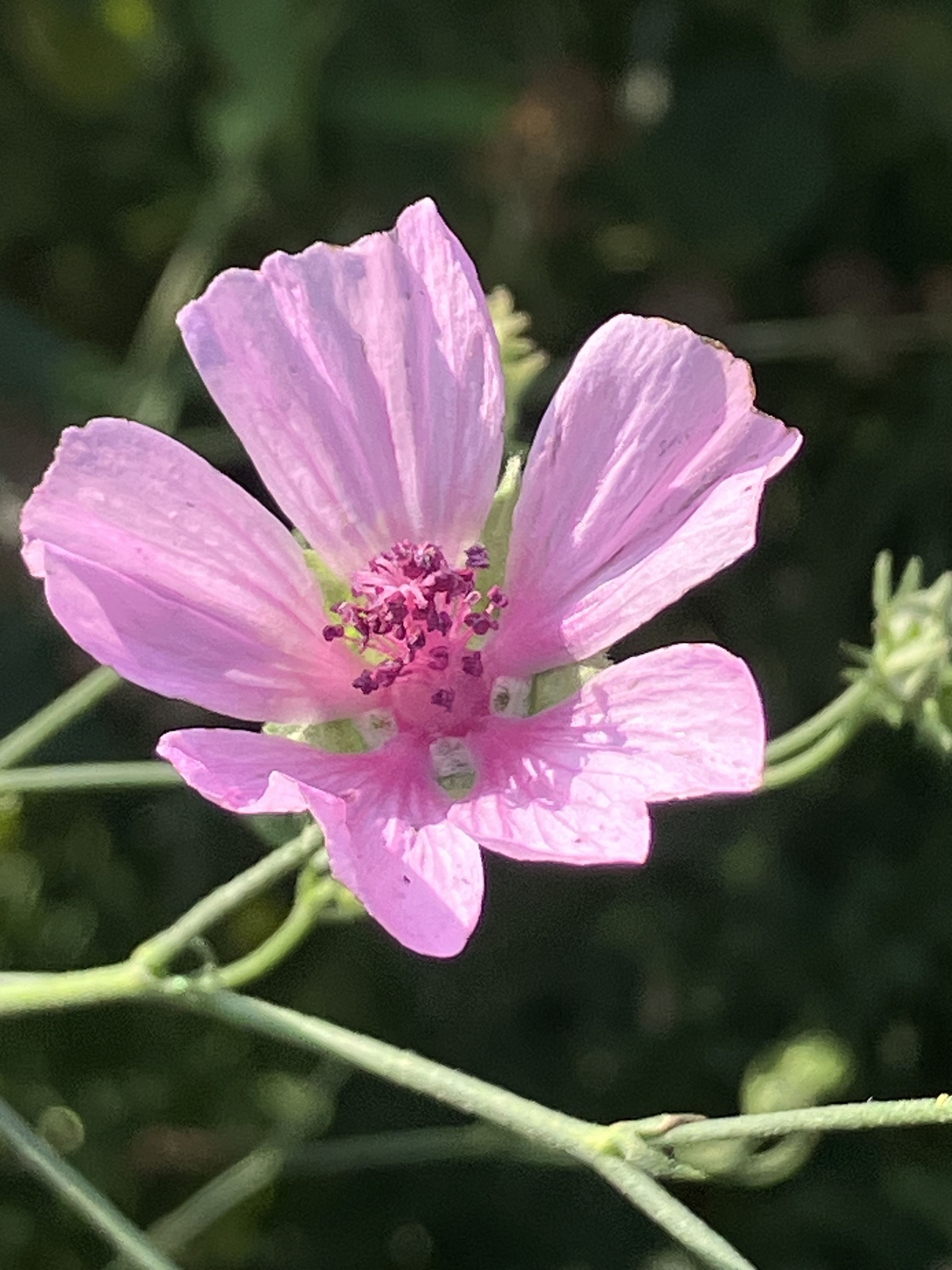 Een hele sterke plant met roze bloemen die licht naar muskus ruiken. Uitgebloeide bloemen zijn populair vogelvoer.